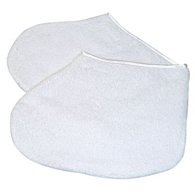Terry velour lined bootees with velcro closure to maximize heat retention during the paraffin treatment. (1 Pair).