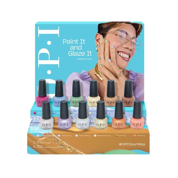 This sheer genius chipboard counter display showcases 12 totally-hue shades from our customisable OPI Your Way collection. Paint it and glaze it for so mani looks.